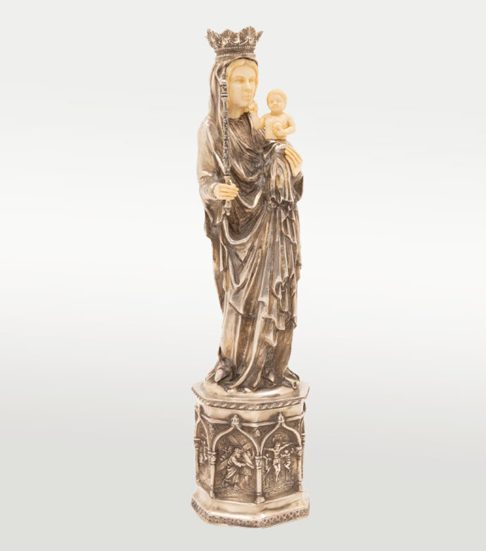 Para nuestra subasta de agosto en el departamento de Antigüedades y Libros de Morton Subastas, “Materialidades de la fe”, contamos con una gran selección de piezas que representan magistralmente las amplias posibilidades plásticas que ha encontrado la fe para manifestarse dentro de la materia. Entre pintura, escultura y grabado en diversos formatos, las obras que presentamos en esta ocasión reflejan la compleja diversidad y riqueza tanto estilística como técnica, que ha caracterizado por tantos siglos a la importante producción visual surgida desde la religión católica. Óleos de múltiples advocaciones marianas, Cristos y Vírgenes tallados tanto en madera, hueso o marfil, íconos de santos de toda índole creados en los rincones más lejanos del cristianismo ortodoxo y figuras sacras elaboradas con kilos de plata fundida de la mejor calidad.